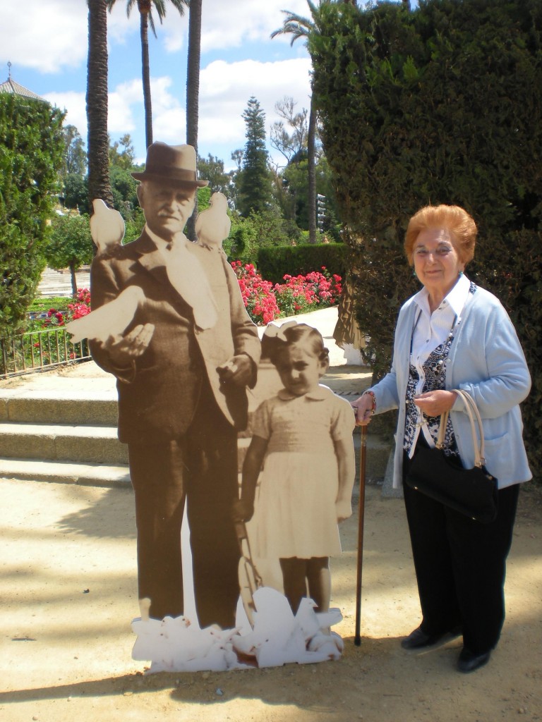 Pulsa en la imagen para agrandar | Nombre participante: Beatriz Saen De Casas Sobrino A�o de la imagen: 2010 Personas en la imagen: Carmen Sobrino Ruiz Comentarios: Foto tomada el 15 de mayo de 2010. En ella aparece mi madre, junto a la reproducción a tamaño real de la foto en la que está ella de pequeña junto a su abuelo paterno en la Plaza de las Palomas.