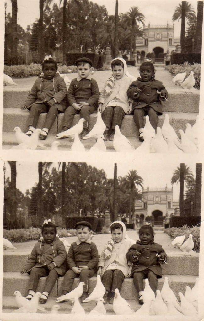 Pulsa en la imagen para agrandar | Nombre participante: Vicky González Cabrera A�o de la imagen: 1959 Personas en la imagen: Mi hermana Vicky, mi hermano Manolo y unos amigos. Comentarios: Como no podía ser de otra manera, la visita al parque de las palomas es obligada. Mis hermanos llevaron a estos amigos Y ¡¡¡ MIRAD LAS CARITAS !!! JA JA JA .... SIN COMENTARIOS.....