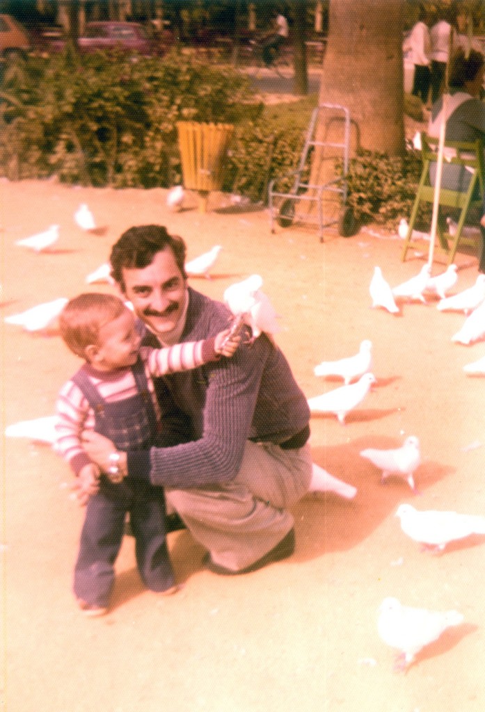 Pulsa en la imagen para agrandar | Nombre participante: Rafael Morales Mohedano A�o de la imagen: 1977 Personas en la imagen: Rafael Morales García, Rafael Morales Mohedano Comentarios: Con mi padre, ofreciendo comida a una paloma