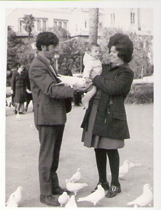 Pulsa en la imagen para agrandar | Nombre participante: José Torres Granell A�o de la imagen: 1973 Personas en la imagen: Manolo, Manuela y su hijo Manolito Comentarios: Manolo le enseña la paloma , que come de su mano a su hijo Manolito , en brazos de su Madre Manuela