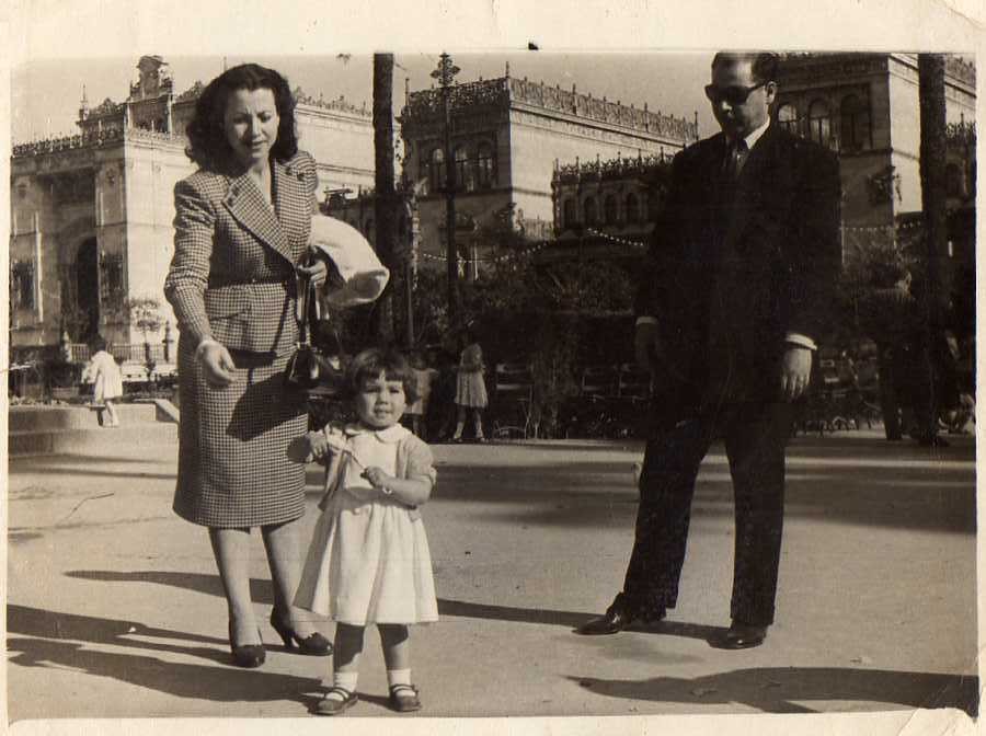 Pulsa en la imagen para agrandar | Nombre participante: Loli Roldan Riego A�o de la imagen: 1952 Personas en la imagen: Mi padre, mi madre y yo con dos años Comentarios: Aunque no se ven las palomas, yo precisamente tengo en la mano un paquete de albejorro, comida de las palomas