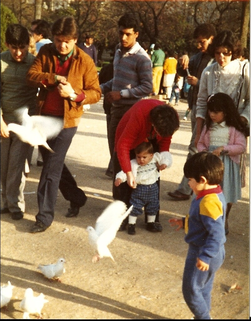 Pulsa en la imagen para agrandar | Nombre participante: Irene Gonzalez Fdez.-ballesteros A�o de la imagen: 1985 Personas en la imagen: Mi hijo y yo Comentarios: Mi hijo era pequeñito y le daba miedo las palomas sobre todo cuando venían hacia el.