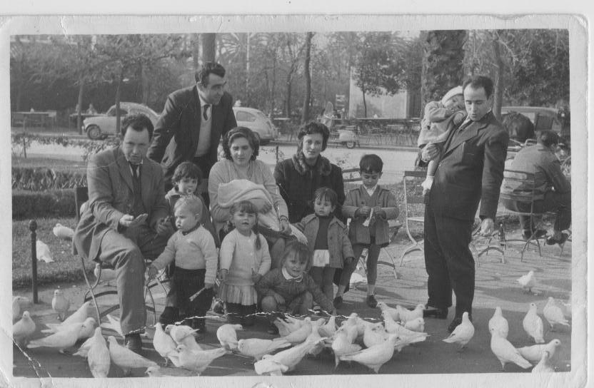 Pulsa en la imagen para agrandar | Nombre participante: Baldomero Borrego Rodas A�o de la imagen: 1962 Personas en la imagen: Hermanos Antonio y Baldomero Borrego Rodas con sus respectivas familias. El señor que está detras de todos es Agustin Ortega (Taxista estepeño) Comentarios: Familia de Estepa. La foto se realizó en una visita a Sevilla en la navidad del 1962/63.