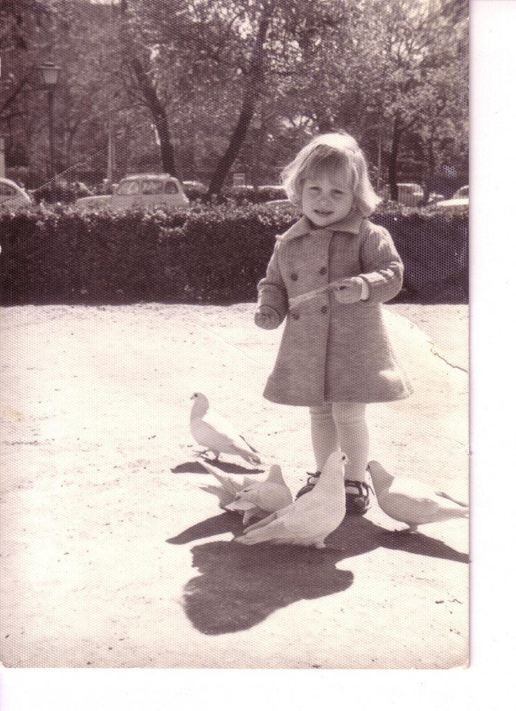 Pulsa en la imagen para agrandar | Nombre participante: Juan Dominguez Leon A�o de la imagen: 1973 Personas en la imagen: Mi hija Lucia Mª Comentarios: Otoño 73 dando de comer alberjones a las palomas con el cartucho en la manita.
