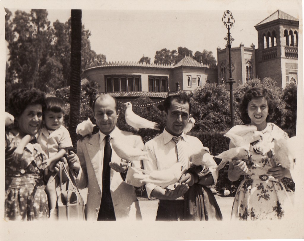 Pulsa en la imagen para agrandar | Nombre participante: María Caro Lunar A�o de la imagen: 1959 Personas en la imagen: de derecha a izqda: María Caro Lunar, Rodolfo Belmonte Falero, Esteban López, Martín López Caro, María Caro Izquierdo Comentarios: Fue durante el viaje de novios de los dos primeros citados. Viven actualmente María Caro y Martín López Caro