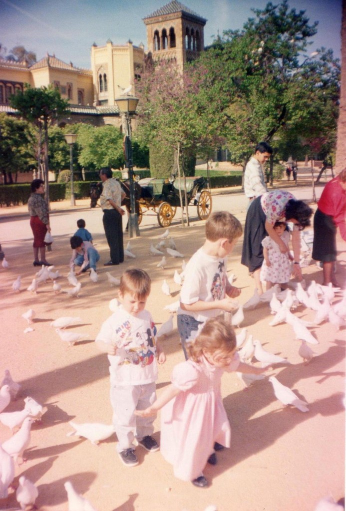 Pulsa en la imagen para agrandar | Nombre participante: Lola Vázquez De Los Santos A�o de la imagen: 1993 Personas en la imagen: Lourdes Sampedro,Jose Manuel Sanchez y Jesus Sanchez Comentarios: Mi hija con sus dos primos que se querian mucho y les encantaban darles de comer a las palomas