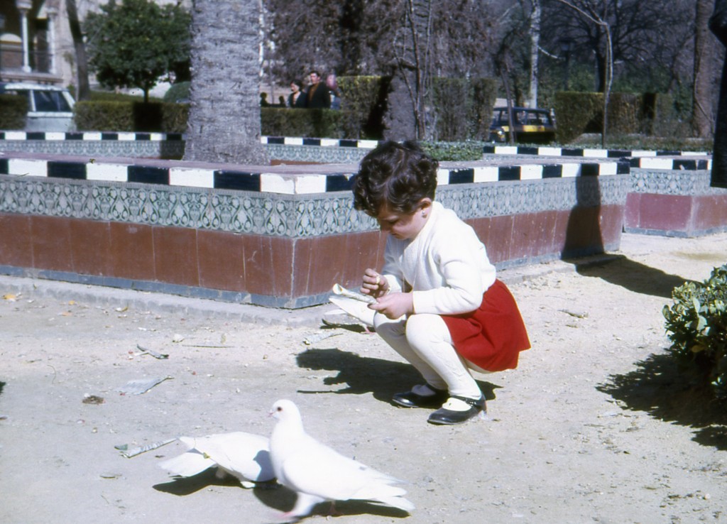 Las palomas de toda la vida, y mi hija de cuatro años.