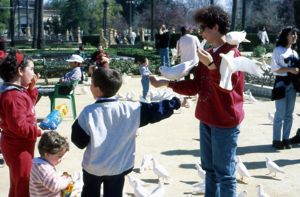 Pulsa en la imagen para agrandar | Nombre participante: Rafael Morales Silva A�o de la imagen: 1997 Personas en la imagen: Mi hija Inma, con sus tres hijos: Ana, Daniel e Inma. Comentarios: En la mano de la pequeña comen las palomas.