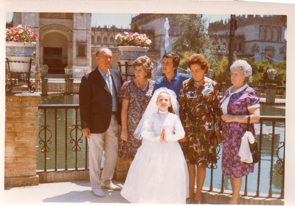 Pulsa en la imagen para agrandar | Nombre participante: Amparo De Los Santos A�o de la imagen: 1971 Personas en la imagen: Mi tío Alberto, mi madre Mª Carmen, mi tía Pacita, mi abuelita Carmen y yo en medio, Amparo de los Santos Comentarios: Mi Primera Comunión-31-05-1971