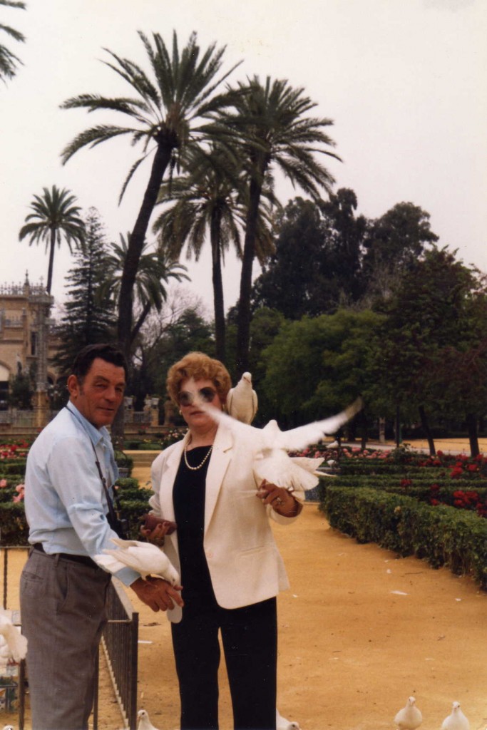 Pulsa en la imagen para agrandar | Nombre participante: Antonia González Cabrera A�o de la imagen: 1973 Personas en la imagen: Mi padre y su hermana Charo, "la americana" Comentarios: No hay edad para disfrutar con las palomas.....¡¡¡ Como extiende las alas la paloma al iniciar el vuelo....!!! PRECIOSA INSTANTANEA !!!