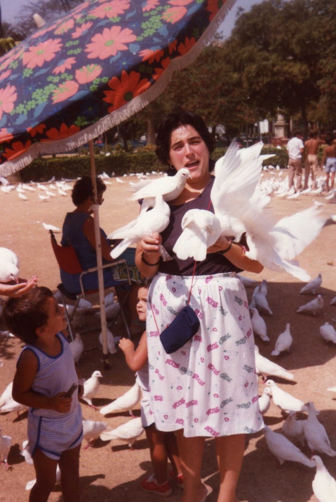 Pulsa en la imagen para agrandar | Nombre participante: Antonia González Cabrera A�o de la imagen: 1983 Personas en la imagen: Yo, con mis hijos Fran y Raúl. Mi madre, antigua arvejonera, tras de mí en su puesto. Comentarios: ¿ Quién disfruta más, los niños o los mayores?. ¡¡¡ Nunca falta una sonrisa en el parque de las palomas !!!
