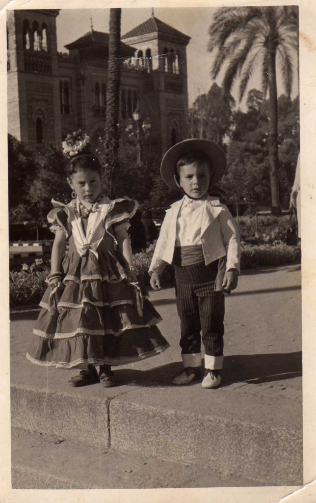 Pulsa en la imagen para agrandar | Nombre participante: Vicky González Cabrera A�o de la imagen: 1959 Personas en la imagen: Yo y mi hermano Manolo. Somos hermanos de la arvejonera Antonia González Cabrera. Comentarios: Somos hijos y nietos de fotógrafos del parque de Mª Luisa. Hijos y hermanos de arvejoneras del parque de las palomas.