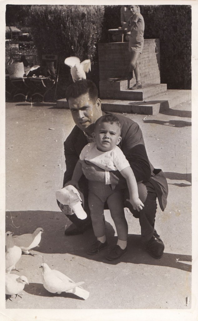 Pulsa en la imagen para agrandar | Nombre participante: Ernesto Naranjo Díaz A�o de la imagen: 1962 Personas en la imagen: Manolo Ernesto con su hijo. Comentarios: Ernesto está más pendiente de la cámara que de las palomas.