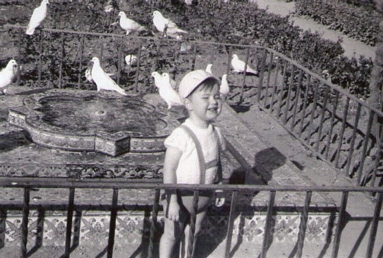 Pulsa en la imagen para agrandar | Nombre participante: José Torres Granell A�o de la imagen: 1968 Personas en la imagen: Francisco Garcia Torres Comentarios: Francisco, con su gorrito blanco sonrie en la fuente de azulejos trianeros no dejando beber a las palomas