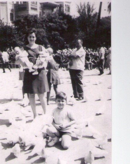 Pulsa en la imagen para agrandar | Nombre participante: José Torres Granell A�o de la imagen: 1970 Personas en la imagen: Josefa Garcia Morales " Pepa" , su primogenito y sus dos hijos mellizos Manolo y Carlos Comentarios: Pepa sostiene en sus brazos a el tesoro de sus dos hijos mellizos. Bajo el sol de una mañana de verano . mientras que su primogenito juega arrodillado con las blancas palomas