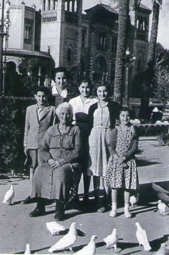 Pulsa en la imagen para agrandar | Nombre participante: José Torres Granell A�o de la imagen: 1954 Personas en la imagen: Angeles Lopez Hernadez y sus nietos Pepe,Rosa,Juani,Angelita y Maria del Carmen Comentarios: Angeles sentada y vestida con el cingulo morado de nuestro Padre jesus del Gran Poder rodeada de sus nietos