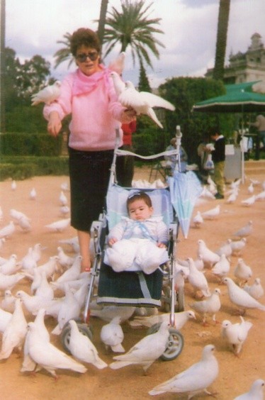 Pulsa en la imagen para agrandar | Nombre participante: José Torres Granell A�o de la imagen: 1988 Personas en la imagen: Rosario Garcia Morales y la niña Ana Perez garcia Comentarios: Bella Foto, llena de colorido, Charo le ofrece las palomas de sus brazos a su sobrina Ana