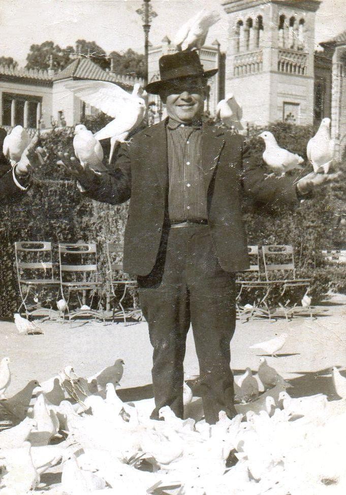 Mi abuelo con su ilusión de ser un espantapájaros.