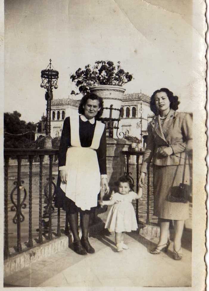 Pulsa en la imagen para agrandar | Nombre participante: Loli Roldan Riego A�o de la imagen: 1951 Personas en la imagen: Mi madre, mi chacha y yo con un año Comentarios: No se ven las palomas pero la foto está hecha en la Plaza de America (Plaza de las Palomas).Tambien hago referencia al uniforme de mi chacha, por aquel entonces yo recuerdo que las chachas llevaban uniformes.