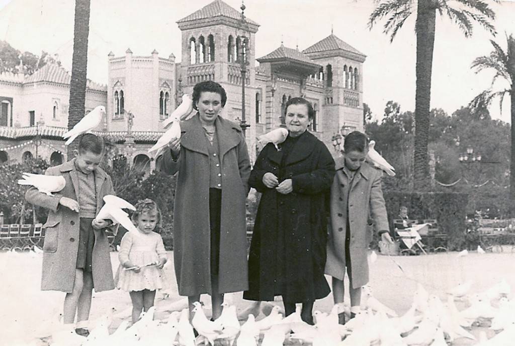 Pulsa en la imagen para agrandar | Nombre participante: Irene Gonzalez Fdez.-ballesteros A�o de la imagen: 1958 Personas en la imagen: mi madre, mi abuela, mis hermanos y yo Comentarios: Nos encantaba que viniera la abuela, para bajar a Sevilla y pasar el día entre la Plaza España, el Parque Mª Luisa y la Plaza de las Palomas