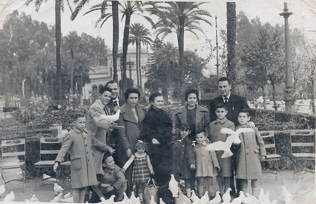 Pulsa en la imagen para agrandar | Nombre participante: Irene Gonzalez Fdez.-ballesteros A�o de la imagen: 1960 Personas en la imagen: Mi familia y una familia amiga de mis padres Comentarios: Los domingos bajamos a Sevilla, con las canasta llena de tortilla de patatas, huevos duros, filetes empanados, comiamos en el parque y pasabamos un día estupendo