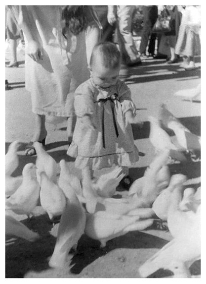 Pulsa en la imagen para agrandar | Nombre participante: Mari Angeles Borja Rodriguez A�o de la imagen: 1980 Personas en la imagen: Es mi pequeña, Veronica (mi hija ) Comentarios: Esta fotografia es de 1980 mi hija tenia 9 meses y en esta plaza las palomas le ayudaron a dar sus primeros pasitos, toda una alegria por lo pequeñita que era.