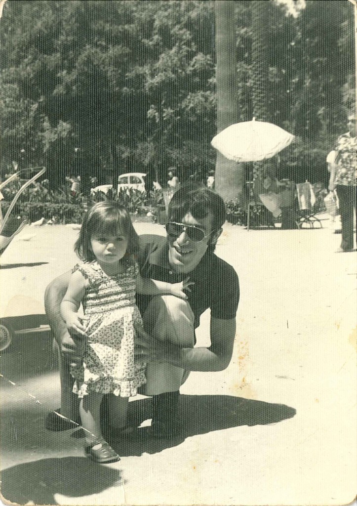 Pulsa en la imagen para agrandar | Nombre participante: José María Vázquez De Los Santos A�o de la imagen: 1976 Personas en la imagen: Mi hija Raquel y yo Comentarios: Tiraron un petardo y se fueron las palomas a las palmeras