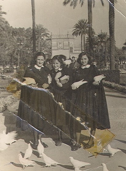 Pulsa en la imagen para agrandar | Nombre participante: Javier Blázquez Bermudo A�o de la imagen: 1951 Personas en la imagen: María Isabel Bermudo (centro) con sus amigas María Isagel y Marisol Comentarios: Con el uniforme del colegio de las monjas de la Doctrina Cristiana.